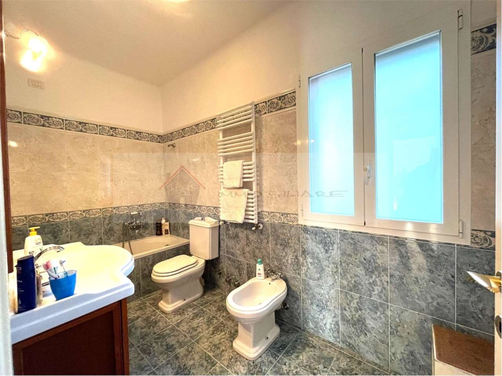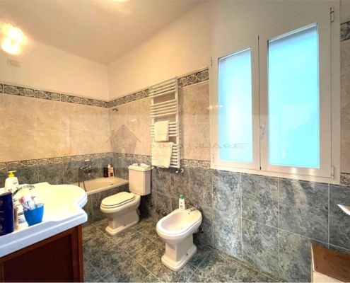 L’appartamento padronale è ampio e spazioso, con una superficie di 166 mq catastali. Dispone al piano terra della zona giorno composta di una sala da pranzo comunicante con un comodo soggiorno entrambi serviti da terrazzi, una cucina abitabile con la vicina dispensa e un bagno; al primo piano troviamo due camere da letto di cui una con cabina armadio, anch’esse servite da un terrazzo e un bagno; all’ultimo piano uno studio con ampio terrazzo. Gli spazi sono ben distribuiti e la luce naturale è abbondante grazie alle numerose finestre che permettono di godere della vista del mare e del verde circostante.
