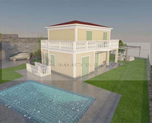 Sulla prima collina di Ospedaletti, nella cosidetta zona del Circuito, inserita in un contesto residenziale e dotata di una meravigliosa esposizione verso il mare, proponiamo una villa unifamiliare, in fase di ULTIMAZIONE lavori. La villa sarà dotata di un curato giardino in piano, piscina e di un grande garage. Composizione: Piano Terra: ingresso, grande soggiorno con zona relax e zona pranzo, cucina abitabile e bagno; parte integrante del piano Terra sarà il portico accessibile dalla cucina e dal soggiorno. Piano Primo: zona notte costituita da due camere di cui una dotata di cabina armadio, e bagno. Piano interrato: grande tavernetta, lavanderia, bagno e cantina; si precisa che l’ambiente al piano interrato è molto ben arieggiato e filtra anche la luce naturale. La zona giorno al piano Terra si affaccerà su uno splendido giardino ed entrambi i piani godranno della vista mare. Nel giardino si potranno realizzare delle aree attrezzate per mangiare e cucinare all’esterno e troveremo anche una bella piscina, così da poter vivere fuori, al meglio, grazie ai tanti periodi dell’anno con l’ottimo clima che vanta Ospedaletti. Capitolato in fase di preparazione. Attualmente è possibile richiedere variazioni della disposizione interna e scegliere i materiali di finitura.