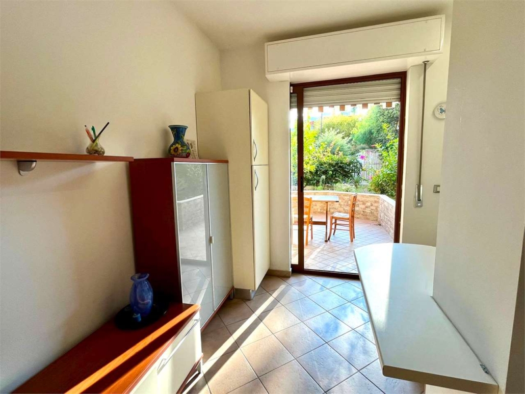 Ampio Bilocale ristrutturato dotato di un bel giardino privato. In zona tranquilla e silenziosa e in palazzina situata sulla prima collina sanremese, dotata di numerosi posti auto condominiali, proponiamo un appartamento con giardino privato parzialmente pavimentato, composto da ingresso su comodo soggiorno, angolo cottura, camera, cameretta armadi/studio, bagno. L’appartamento è in perfette condizioni e abitabile subito. E’ dotato di cantina, impianto di climatizzazione caldo/freddo azionato da pompa di calore, tenda esterna. L’arredamento è incluso nel prezzo. Le spese condominiali sono contenute. I posti auto condominiali sono numerosi e non si ha difficoltà a trovarne di liberi. Il giardino è curato, parzialmente pavimentato e quindi perfetto per mangiare all’aria aperta, ricco di piante da fiore e anche un piccolo albero di agrumi; ideale per chi ha animali domestici o desidera usufruire di un ampio spazio all’aperto.